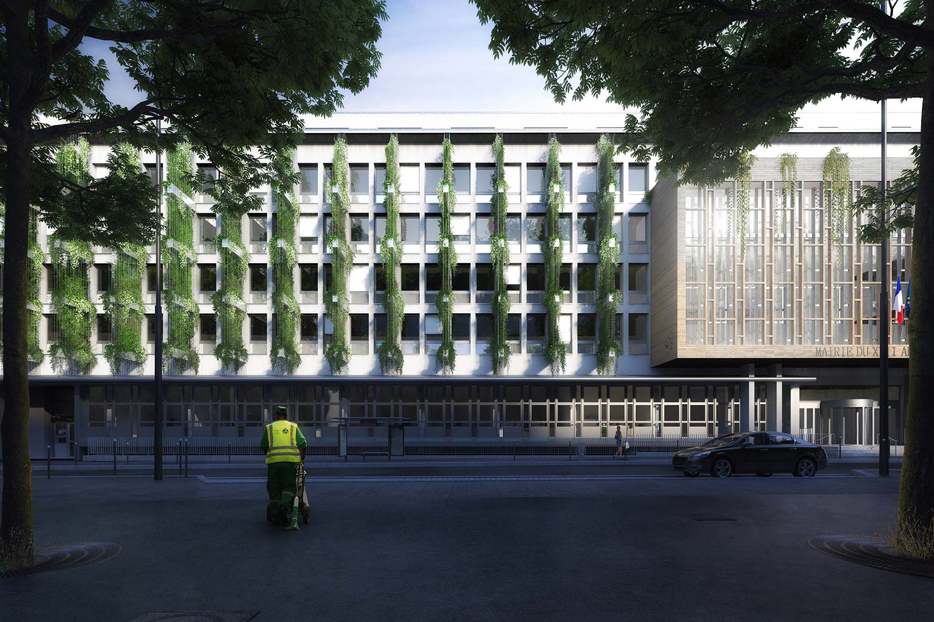 Marché de conception-réalisation pour la requalification des 2 000 m2 de la façade principale de la Mairie du 17 ème arrondissement de Paris avec mise en place d’une ITE, remplacement des menuiseries extérieures, réfection des installations CVC et végétalisation des façades et toitures terrasse. Opération en site occupé Mission complète aux côtés de VEOLIA Énergie France Montant des travaux : 2 M€ HT Maître d’ouvrage : Mairie de Paris Perspectives : Imagineer Contributions : Quentin Fruchaud, Raphaël Philippe