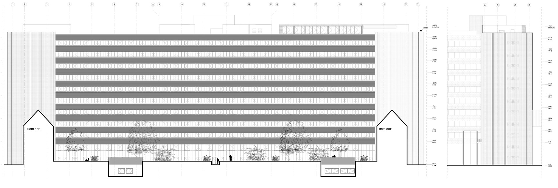 Vue depuis le bâtiment de l'Horloge et le jardin